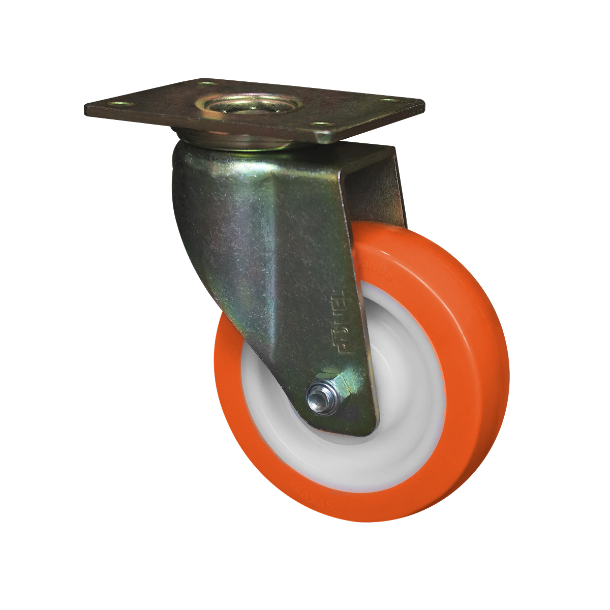 RONEL RN01 NPU 200 — большегрузное полиуретановое колесо. Его конструктивной основой служит обод, отлитый из высокопрочного белого полиамида, который придает колесу максимальную жесткость и антикоррозийную инертность. Контактный слой из износостойкого полиуретана обеспечивает превосходное сцепление с любыми типами поверхностей. В ступице установлен шариковый подшипник, обеспечивающий плавный ход колеса. Кронштейн в модели поворотный, изготовлен из оцинкованной стали.