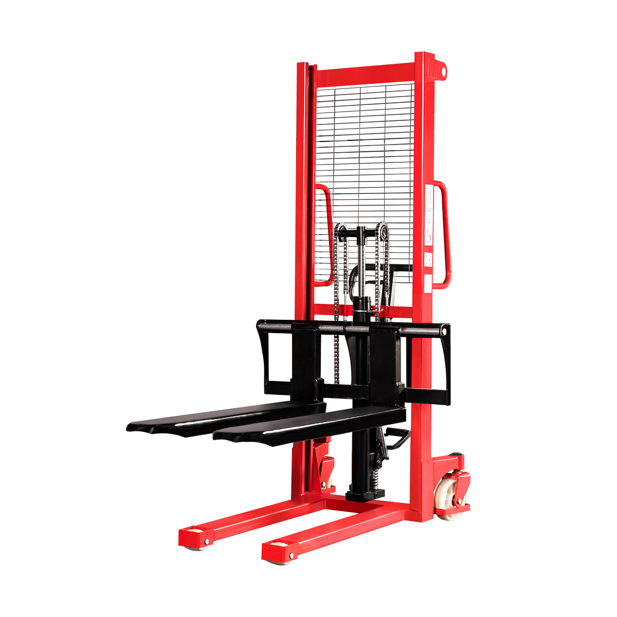 - Подъемные вилы приводятся в движение накачиванием рукоятки или педали.