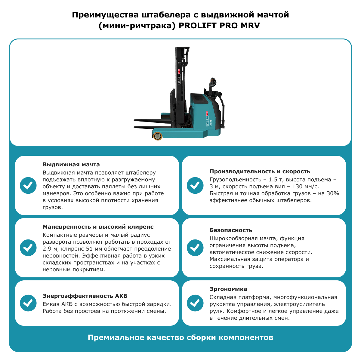 Штабелер с выдвижной мачтой PROLIFT PRO MRV 1530 li-ion