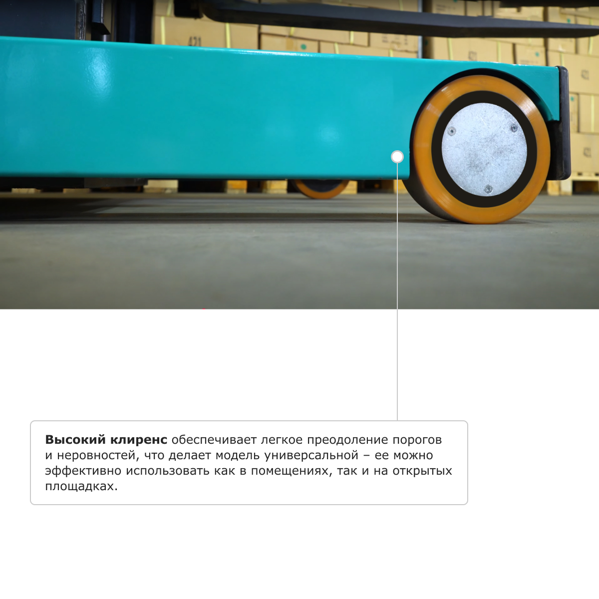 Длительная работа в автономном режиме возможна благодаря эффективному тяговому электродвигателю и емкой АКБ. Модель маневренная, обладает небольшими габаритами, легка в управлении и обслуживании. Грузоподъемность равна 1500 кг. Максимальная высота подъема составляет 3.5 м, грузоподъемность — 1500 кг.