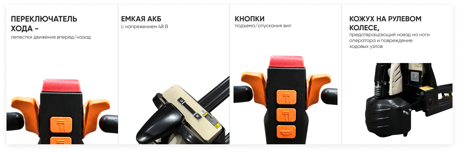 Сопровождаемая тележка PROLIFT M2 SK20L — надежное, безопасное и функциональное оборудование. Для работы с хрупкими грузами и для удобства передвижения в узких проходах служит функция «черепаший ход». Предусмотрено реверсивное торможение и система, предотвращающая откаты техники на поверхностях с уклоном. Высокую устойчивость обеспечивают дополнительные упоры. Ведущее колесо и тяговый двигатель закрыты кожухами, защищающими их от механических повреждений и исключающими наезд на ноги оператора.