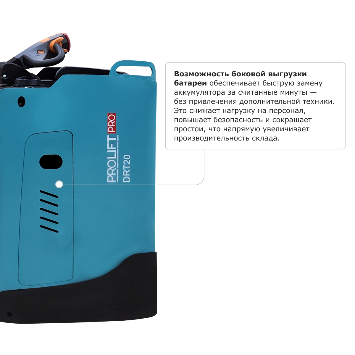 Самоходная электрическая рохля DRT25 с сиденьем для оператора входит в линейку профессиональной складской техники PROLIFT PRO. Используется для работы с паллетированными грузами массой до 2.5 т, выдерживает интенсивные нагрузки. Емкий аккумулятор позволяет бесперебойно работать длительное время. Благодаря наличию оборудованной кабины с обзором рабочей зоны 360° снижается нагрузка на оператора, повышается его производительность и работоспособность.