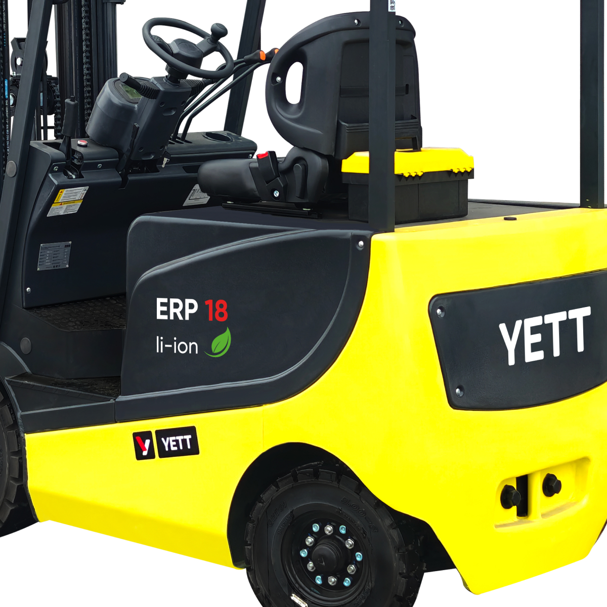 Электрический погрузчик YETT ERP18 li-ion M300-3W оборудован необслуживаемыми двигателями мощностью 7700 Вт (подъема) и 7500 Вт (движения). Электродвигатели не вырабатывают выхлопные газы, что позволяет использовать технику в закрытых помещениях неограниченное количество времени. Литий-ионная АКБ емкостью 350 Ач обеспечивает длительную автономную работу. Высота подъема вил составляет 3 м, грузоподъемность — 1800 кг.