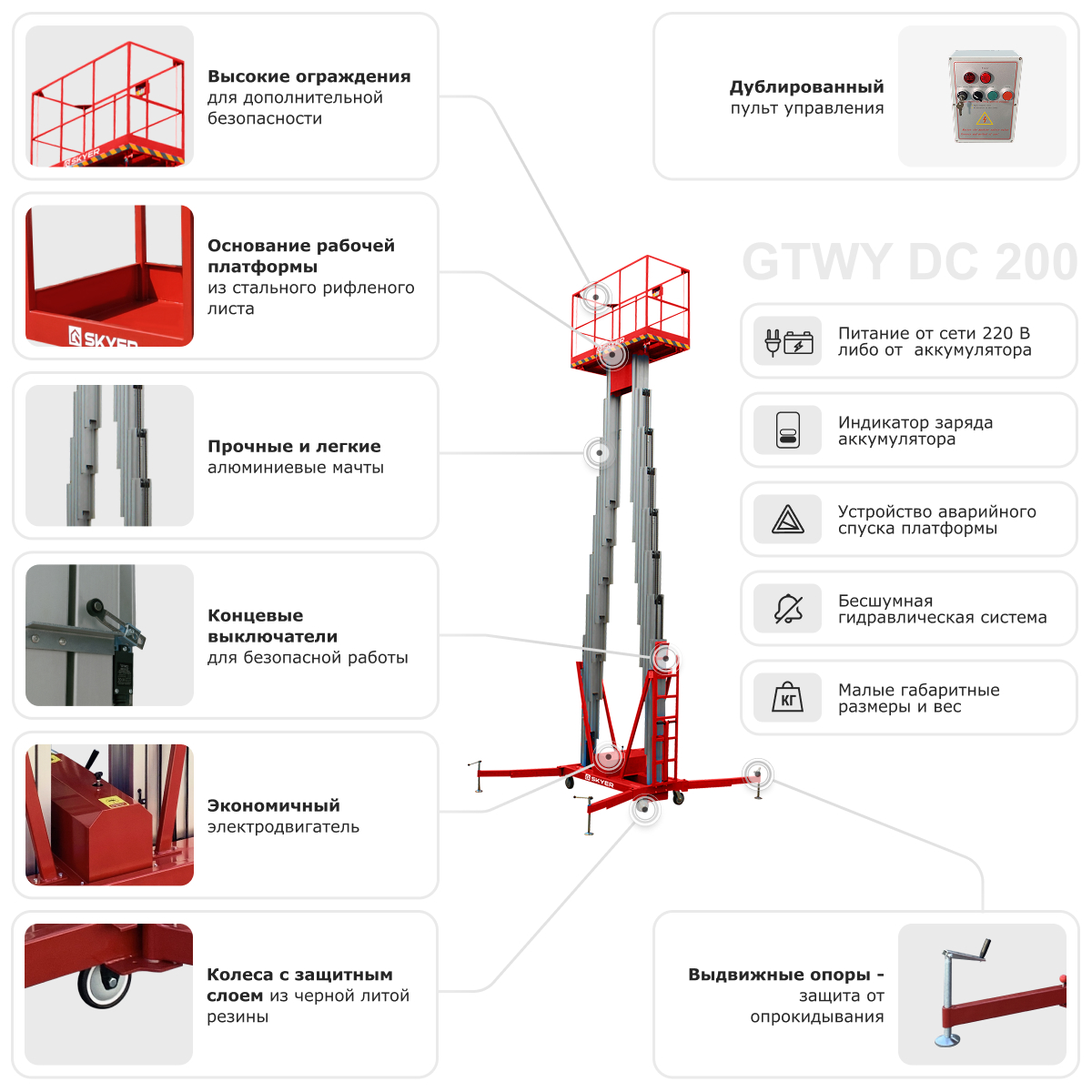 Двухмачтовый подъемник SKYER GTWY12-200 AC/DC
