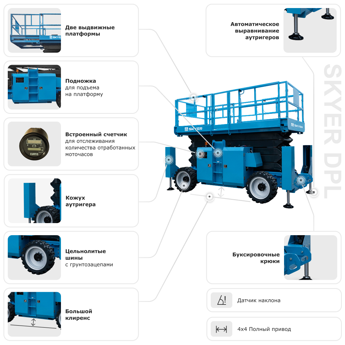 Подъемник самоходный дизельный ножничный с выдвижными платформами SKYER DPL1868