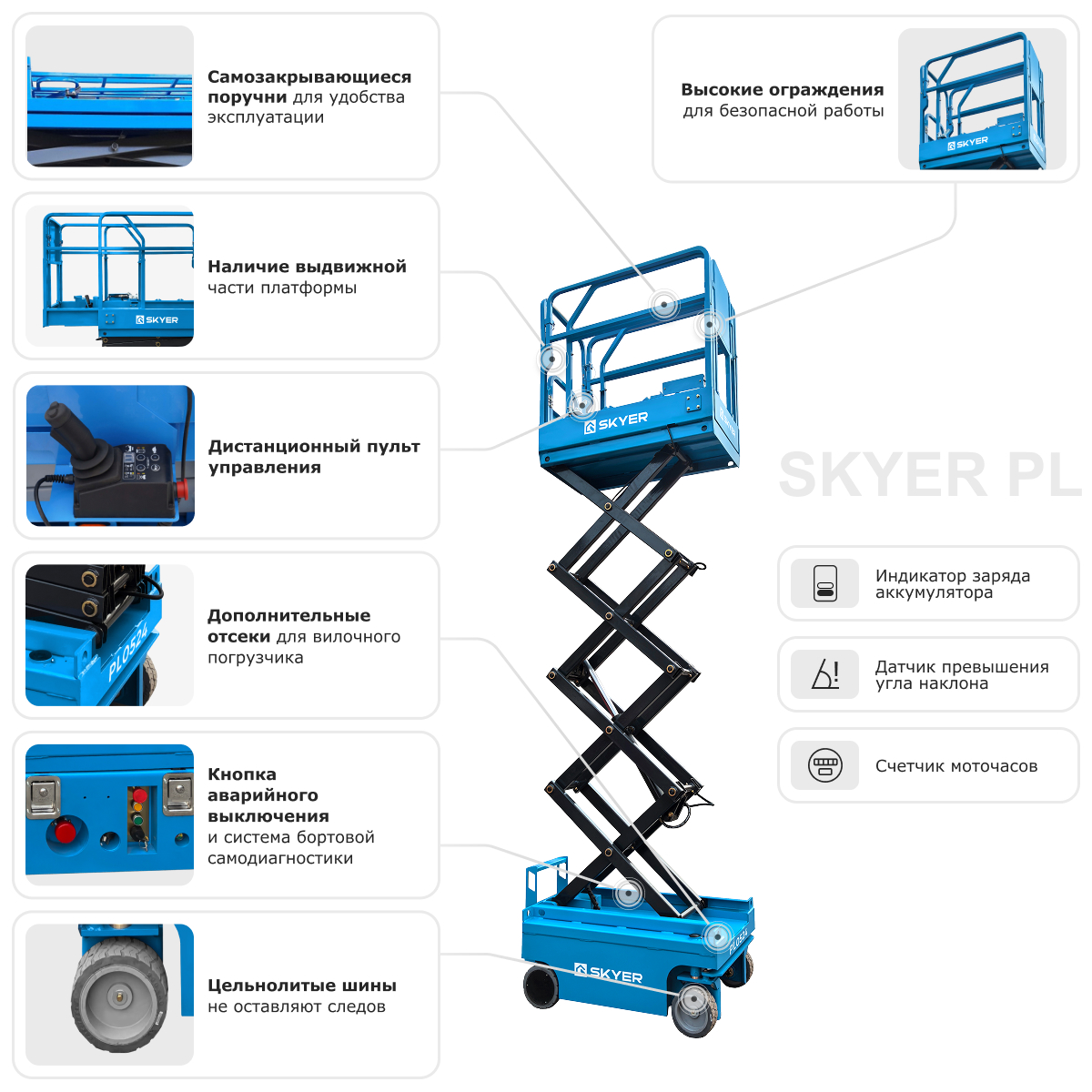 Самоходный ножничный подъемник SKYER PL0624 с выдвижной платформой (узкая база)