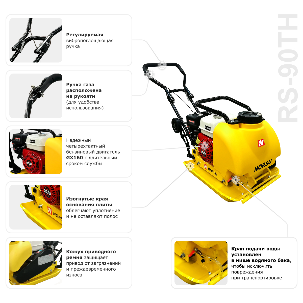 Виброплита NORSU RS-90TH (колесный комплект, бак для воды)
